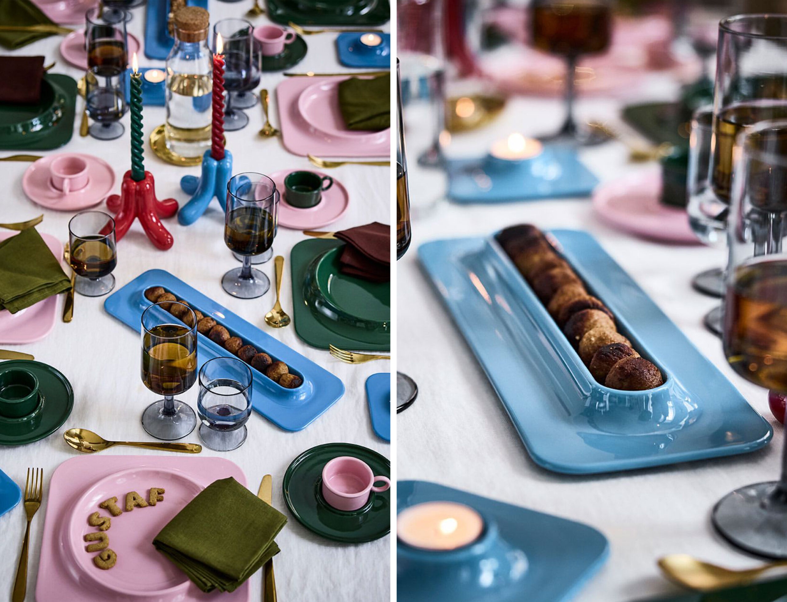 Gustaf Westman has teamed up with Ikea to present a 12-piece homeware collection, bringing his playful designs and signature colourways to life. Cartoon style tableware arrives in brightly coloured shades of red, green, bubble-gum pink and baby blue.