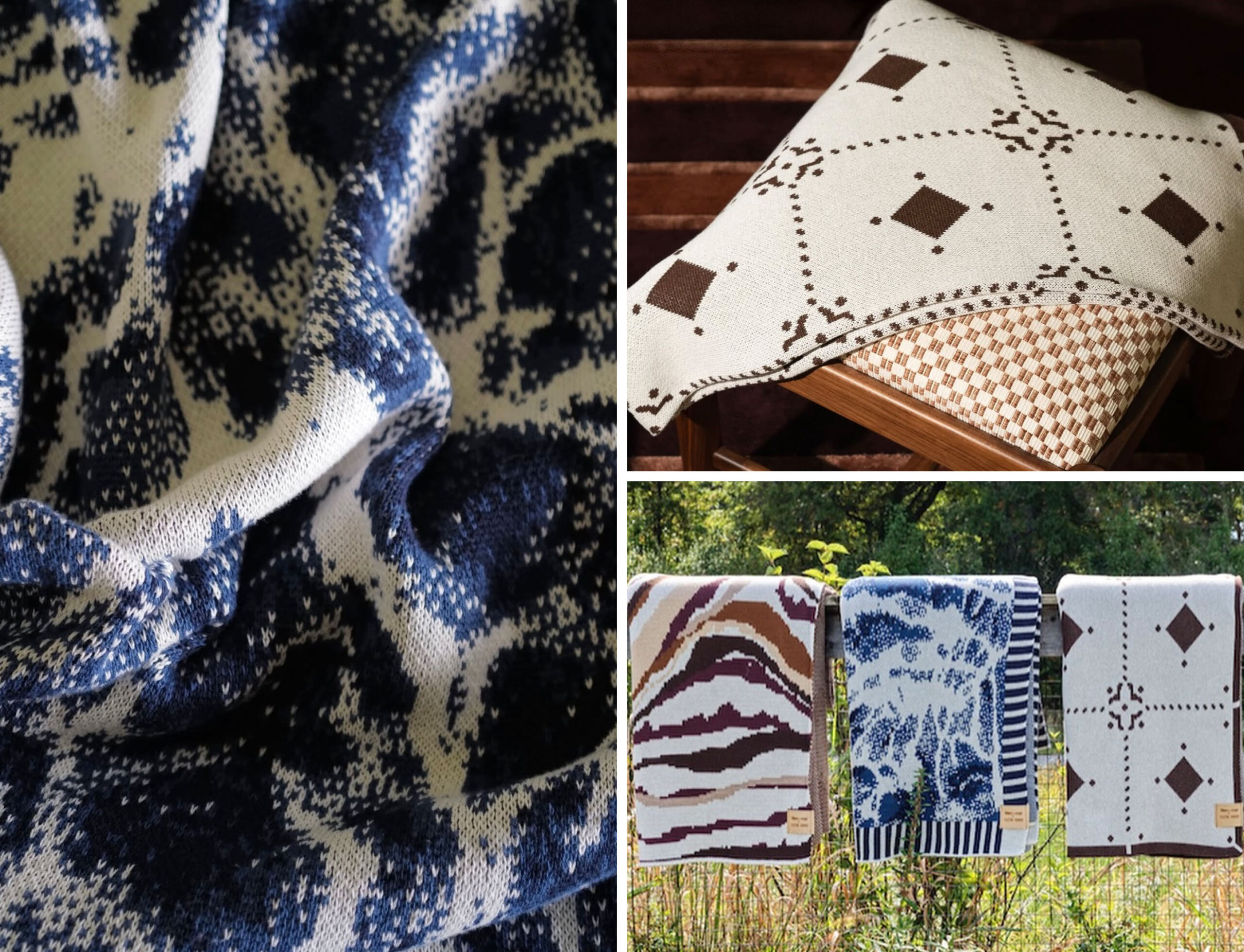 Bien Mal creates thoughtfully designed knit blankets that function like visual stories, using bold patterns and colour to capture landscapes, memories, and cultural motifs.